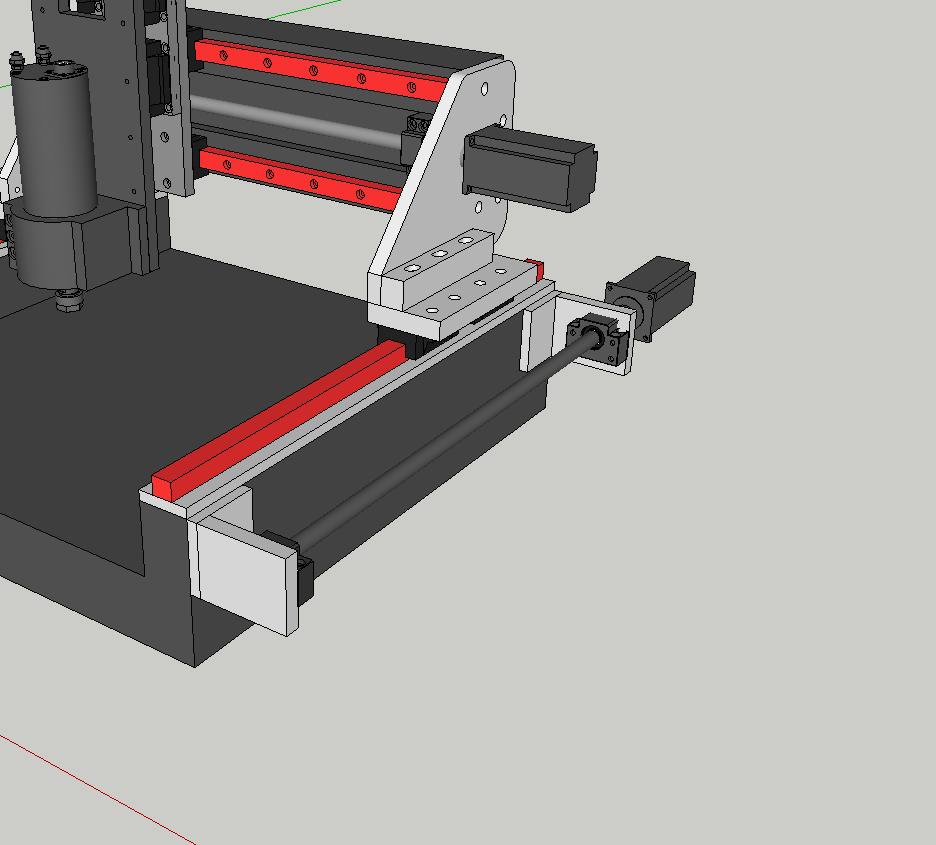Interesting idea. Problem is the ballscrew isn't long enough to allow the bearing blocks to reach each end of the raised sides...
