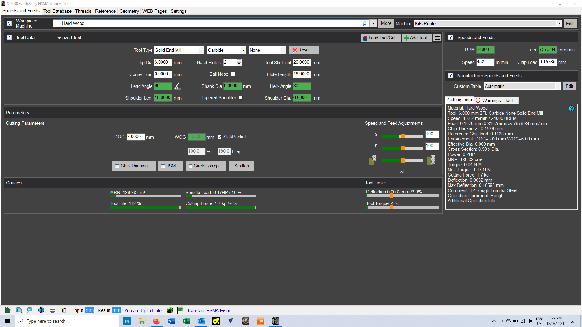(lets say aluminium 6061 is cut with HSS tool with diameter of 10mm, feed 100mm\min and depth of cut 2mm)