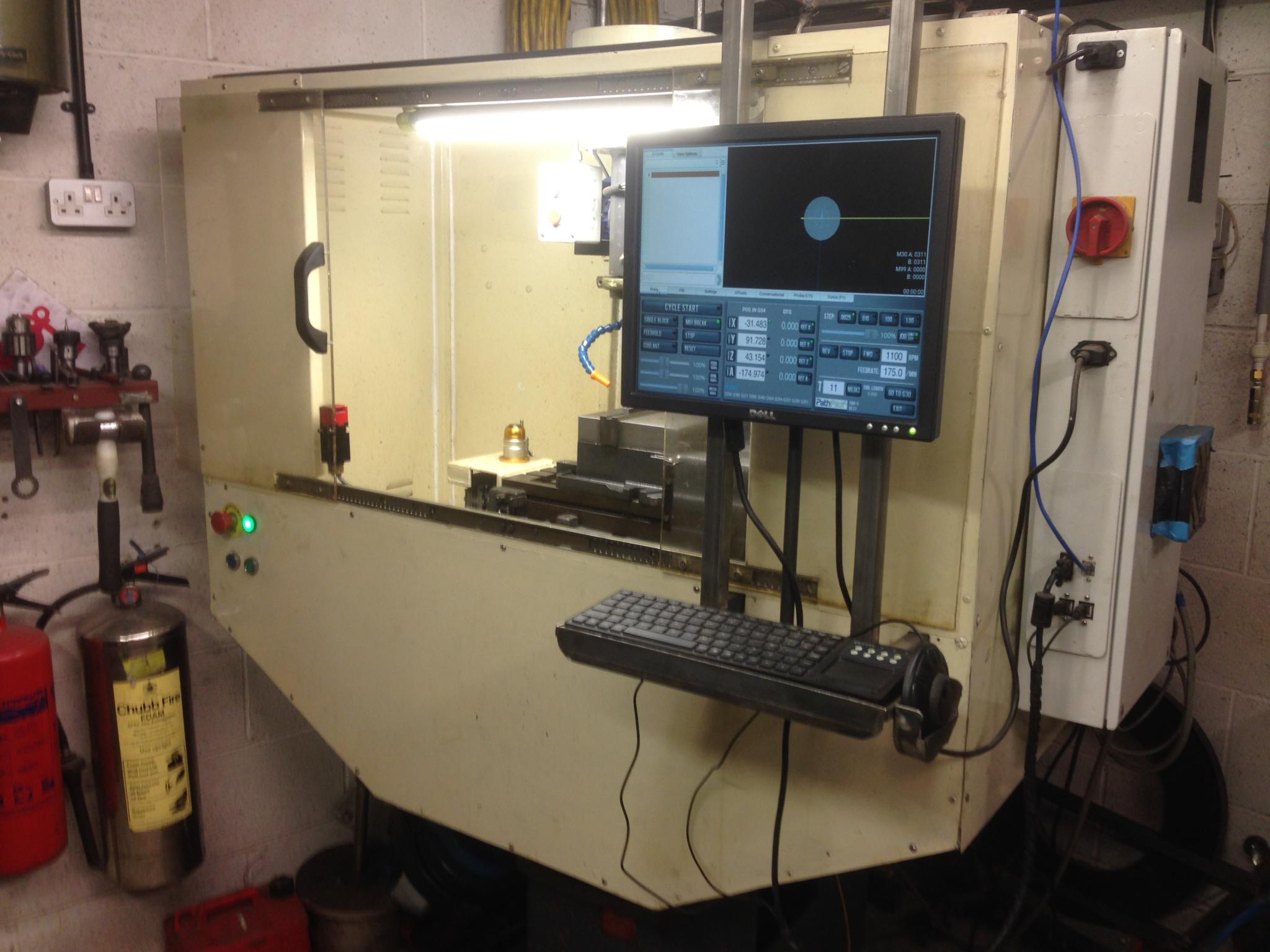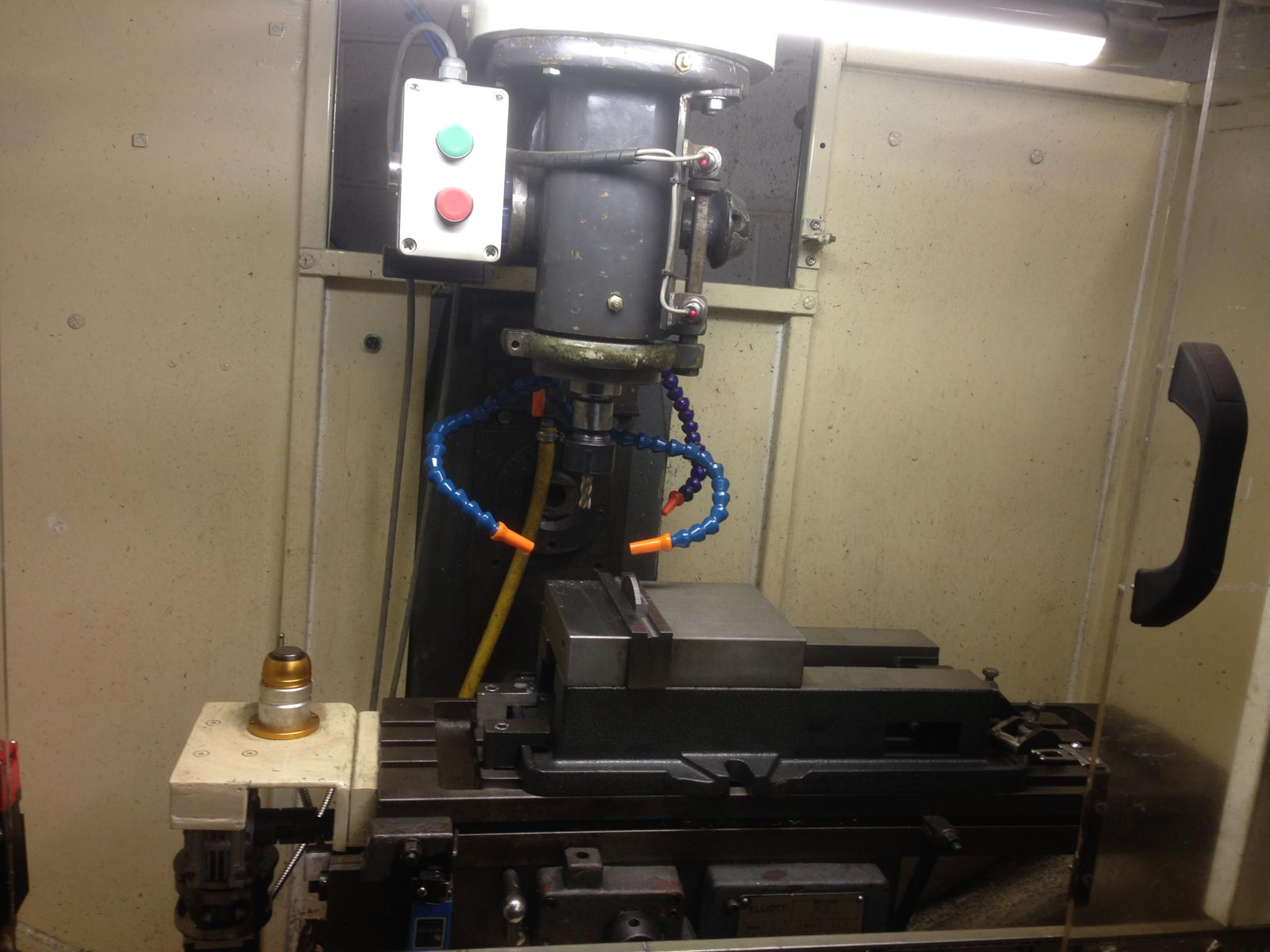 The mill is quite small and compact and has had an enclosure built to contain a coolant system.
