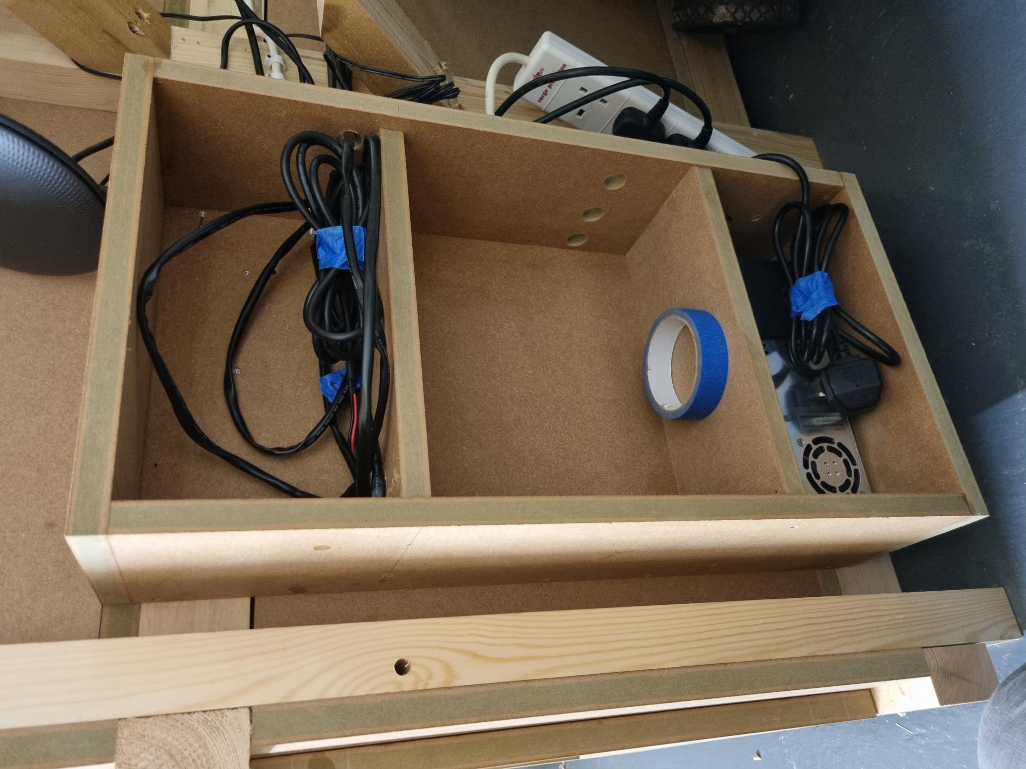 I have wired the motors and run those under the table top into the drawer unit - although I am not entirely satisfied with this option and may go for a dedicated side hung cabinet?