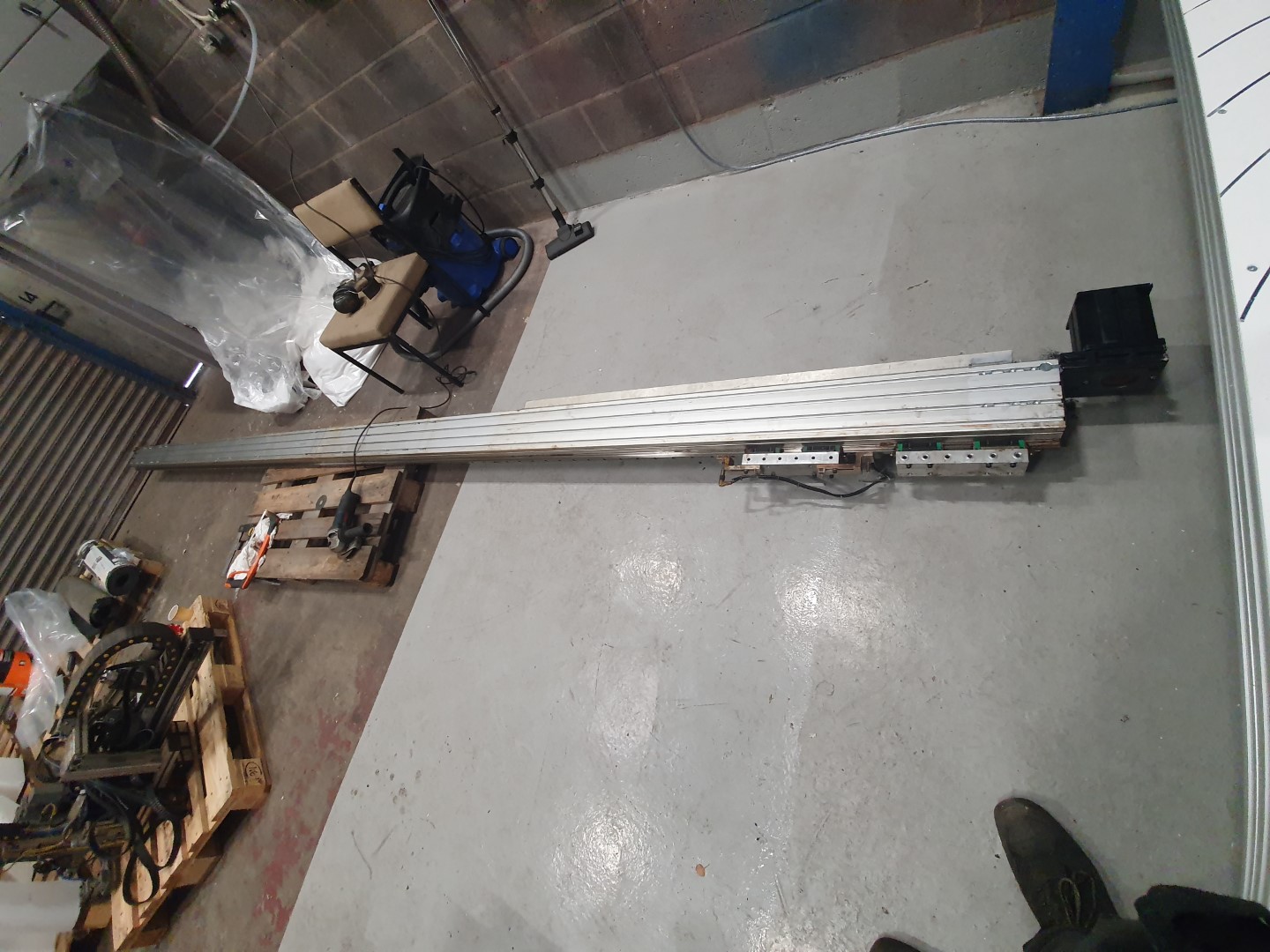The main part of the robot was this 6m ali extrusion. Originally they have the half round guides with bearings on but the front one that takes all the weight of the robot tended to fail so we replaced those with linear bearings. I've cut these in half and I think, stood on end they will make a great base for the machine. I even went scrounging and found a spare pair of linear bearings that we saved off one of the other robots. This gives me two for each side which should make a pretty stable base for the gantry.