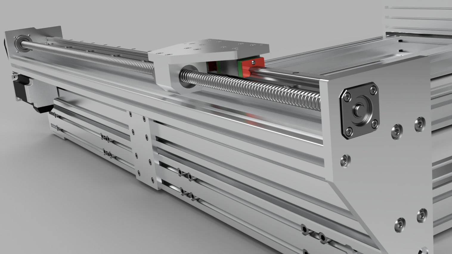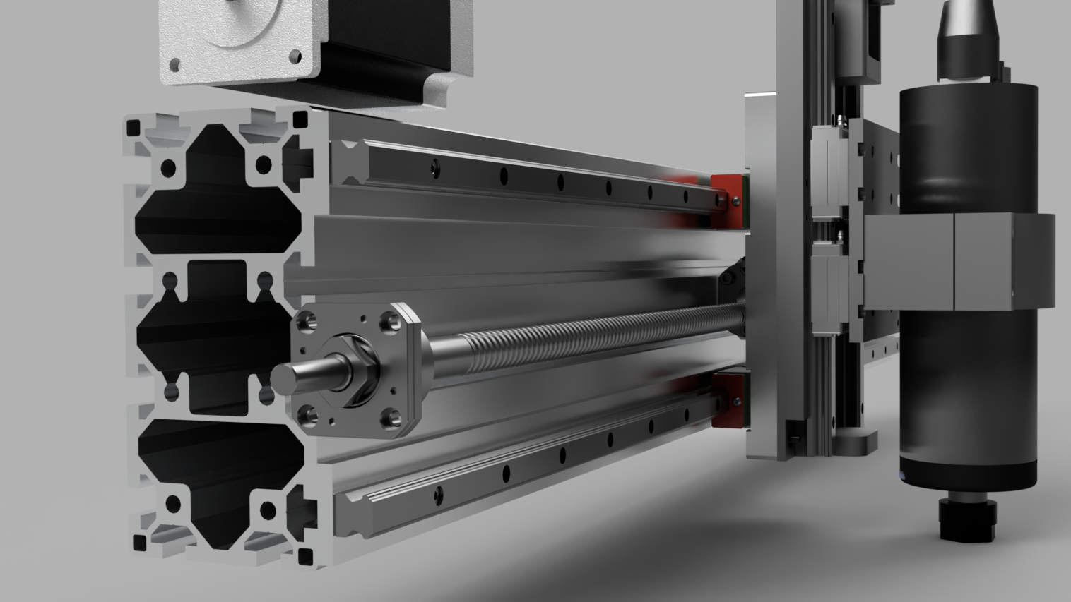I have modelled in room for either Nema24 closed loop steppers or similar sized servos. I plan to use belt & pulleys to couple the motors to the ballscrews to give me the option to adjust gearing, I can gear the servos down to shaft speeds this way.