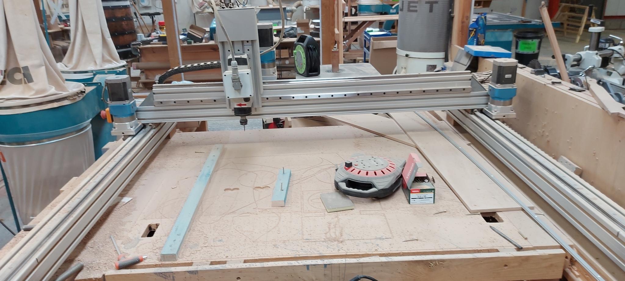 It has a 1200mm x 1200mm bed and we only use it one a month or so to engrave the occasional piece of oak (lettering)