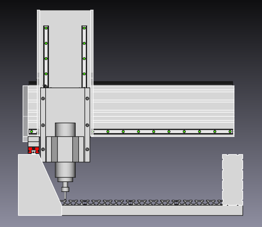 The gantry is L shaped 80 x 120 heavy profile and its running on two 80 x 200 heavy profiles in the Y axis. The bed is 20 x 180 profile on top of 80x40 profile.
