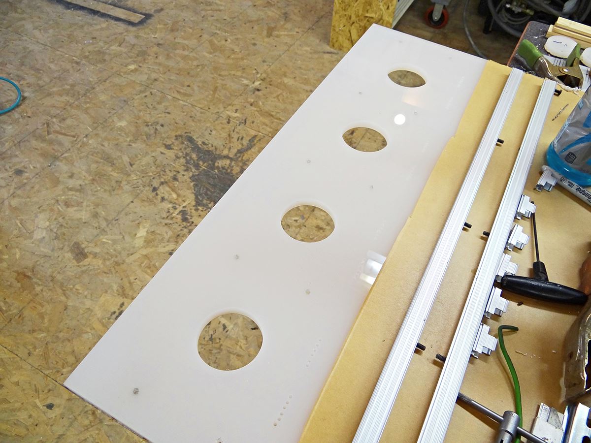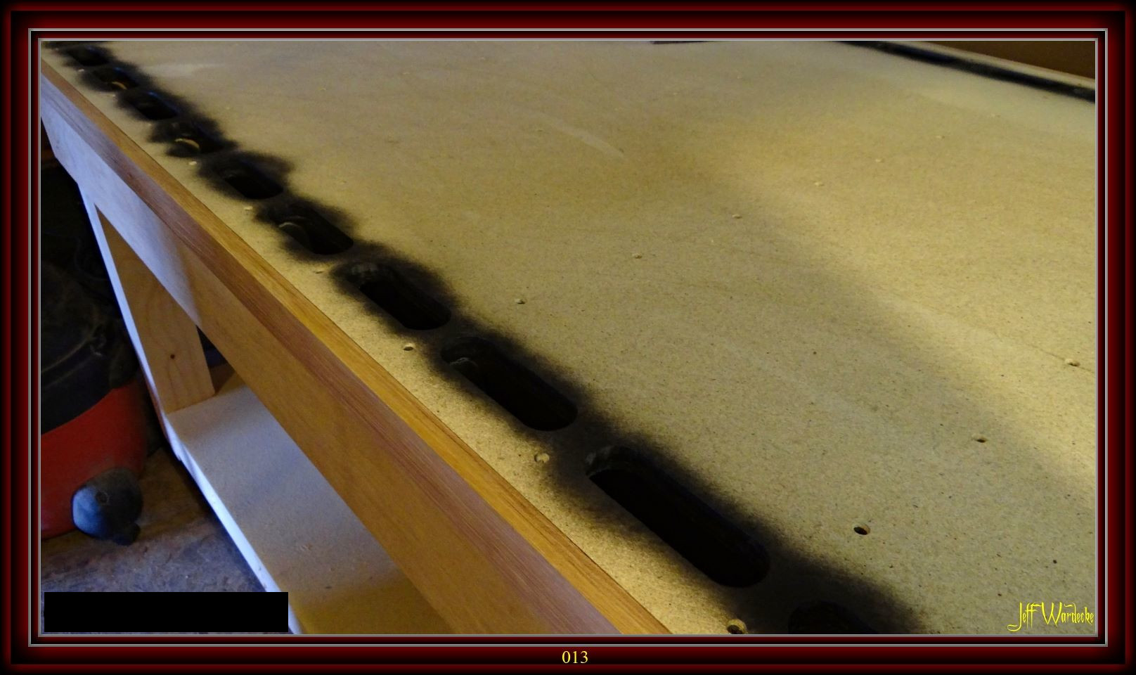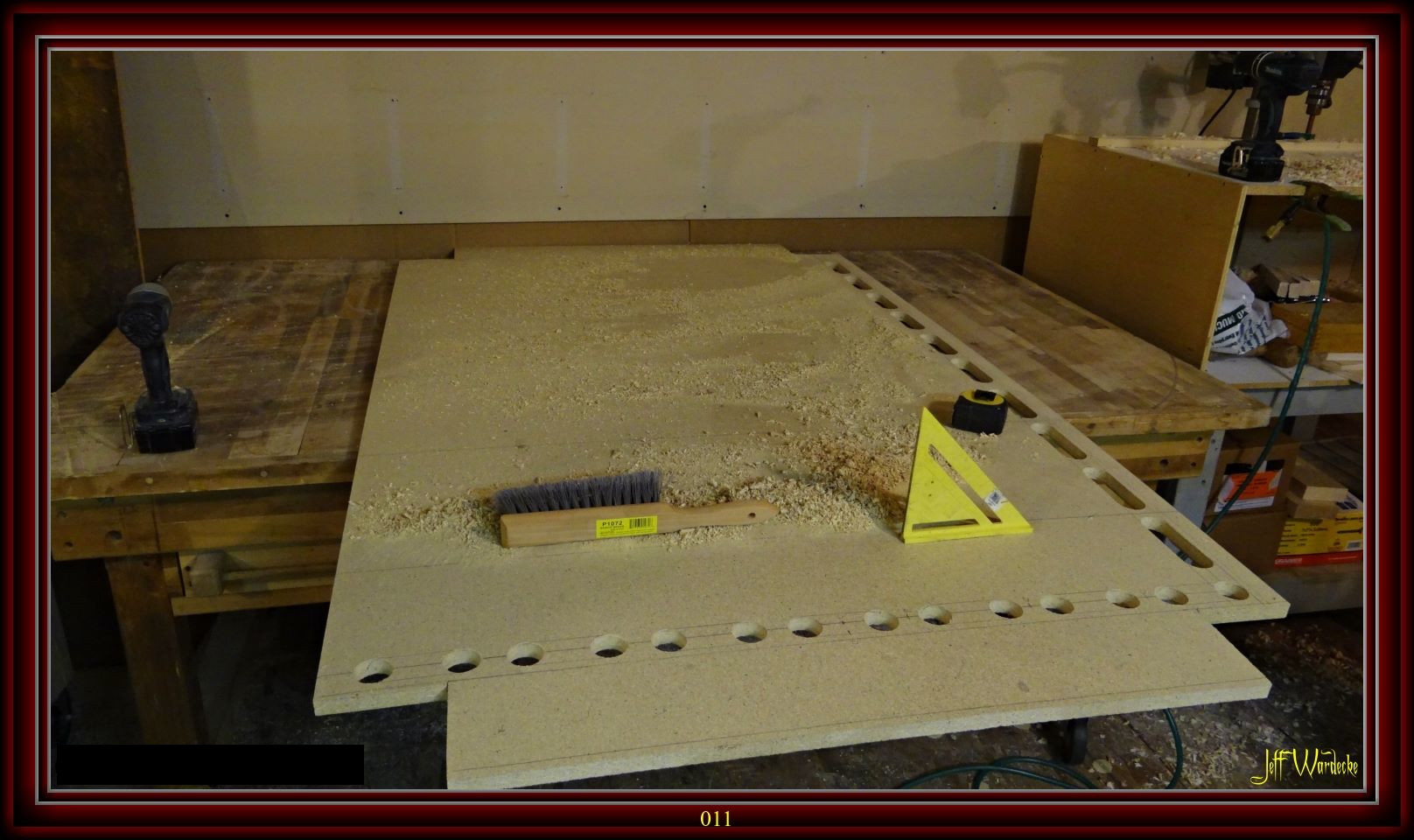 Top of the table getting the holes cut. sure would be nice to have a cnc router to do this.