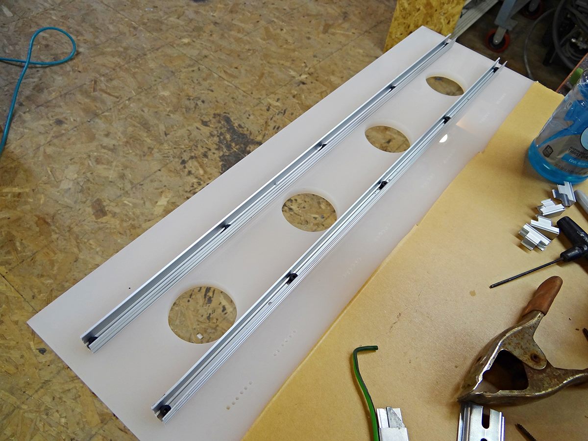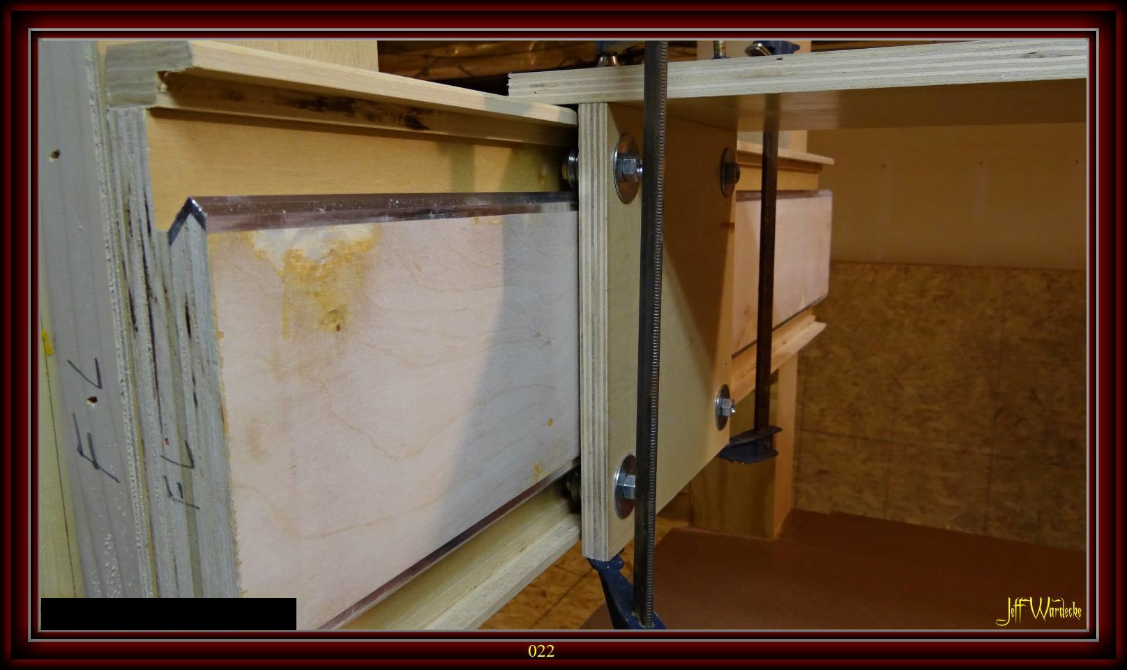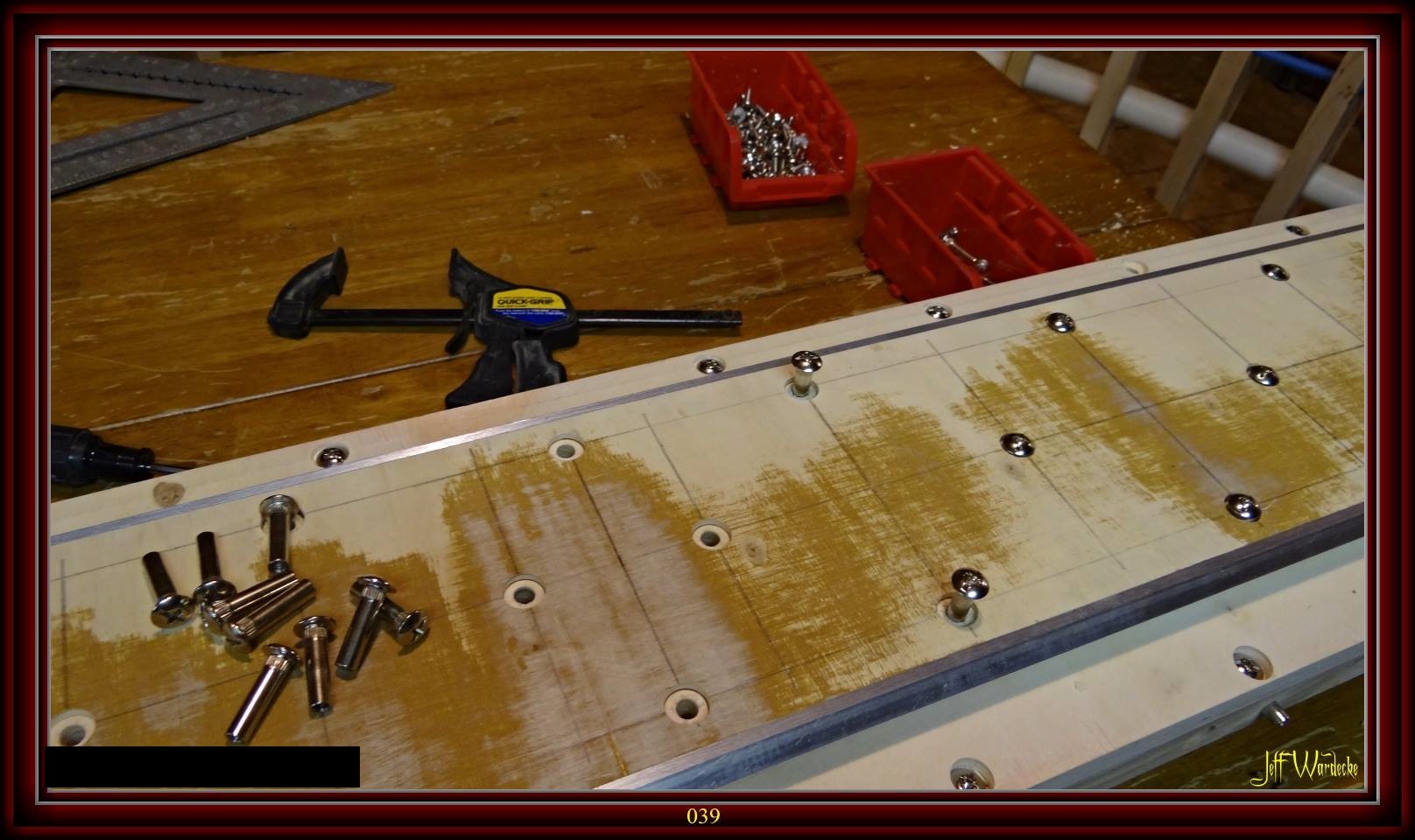 Choose to 45 the plywood for the rails and epoxy the aluminum channel instead of just laying it horizontal with one edge up and one down. felt there was more surface area.