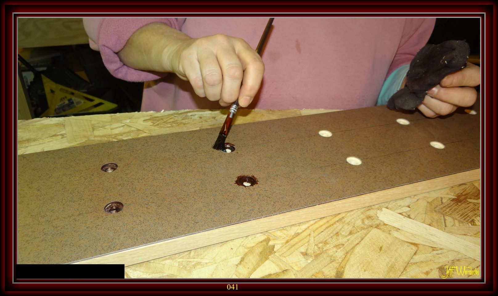 I decided just for cosmetics to paint the dust collection holes before the Formica went down, had the paint wouldn't of made a special trip to town for it. lol