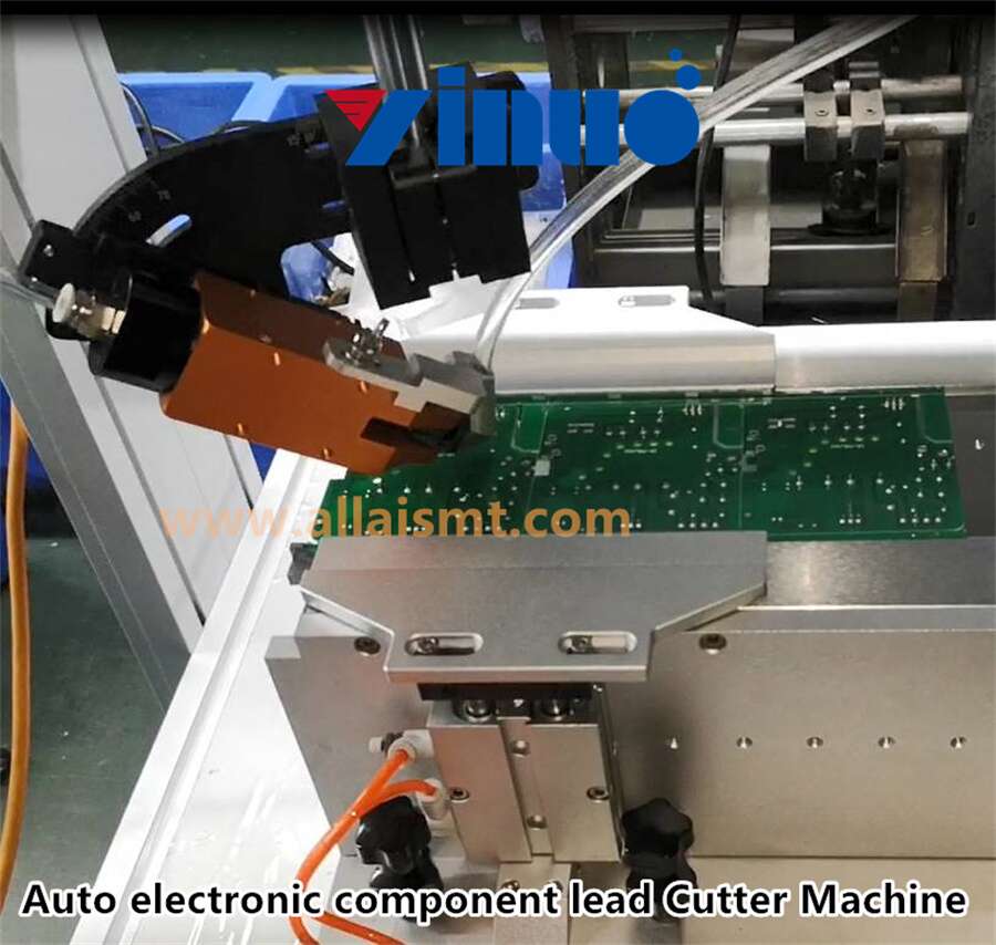 It uses what looks to be a custom-design cutting tool to remove the leads from through-hole components.