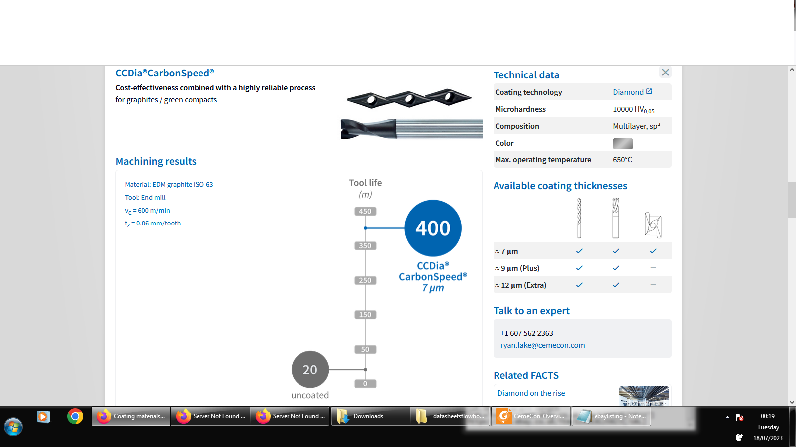 Link to Cemecon pdf file about CCDiaCarbonSpeed