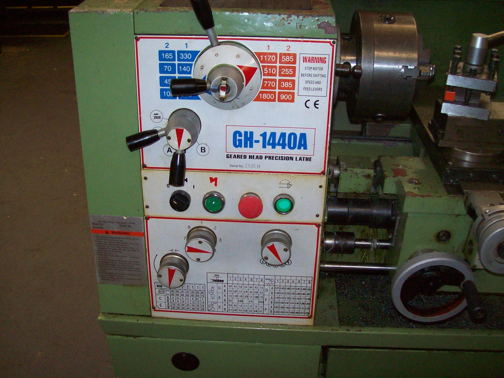 Hi the lathe is a GH-1440A probably a Chinese model was used then moved but never got 3 phase fitted and convertor was required else where so just sat there open to offers around £1500 buyer to collect.
