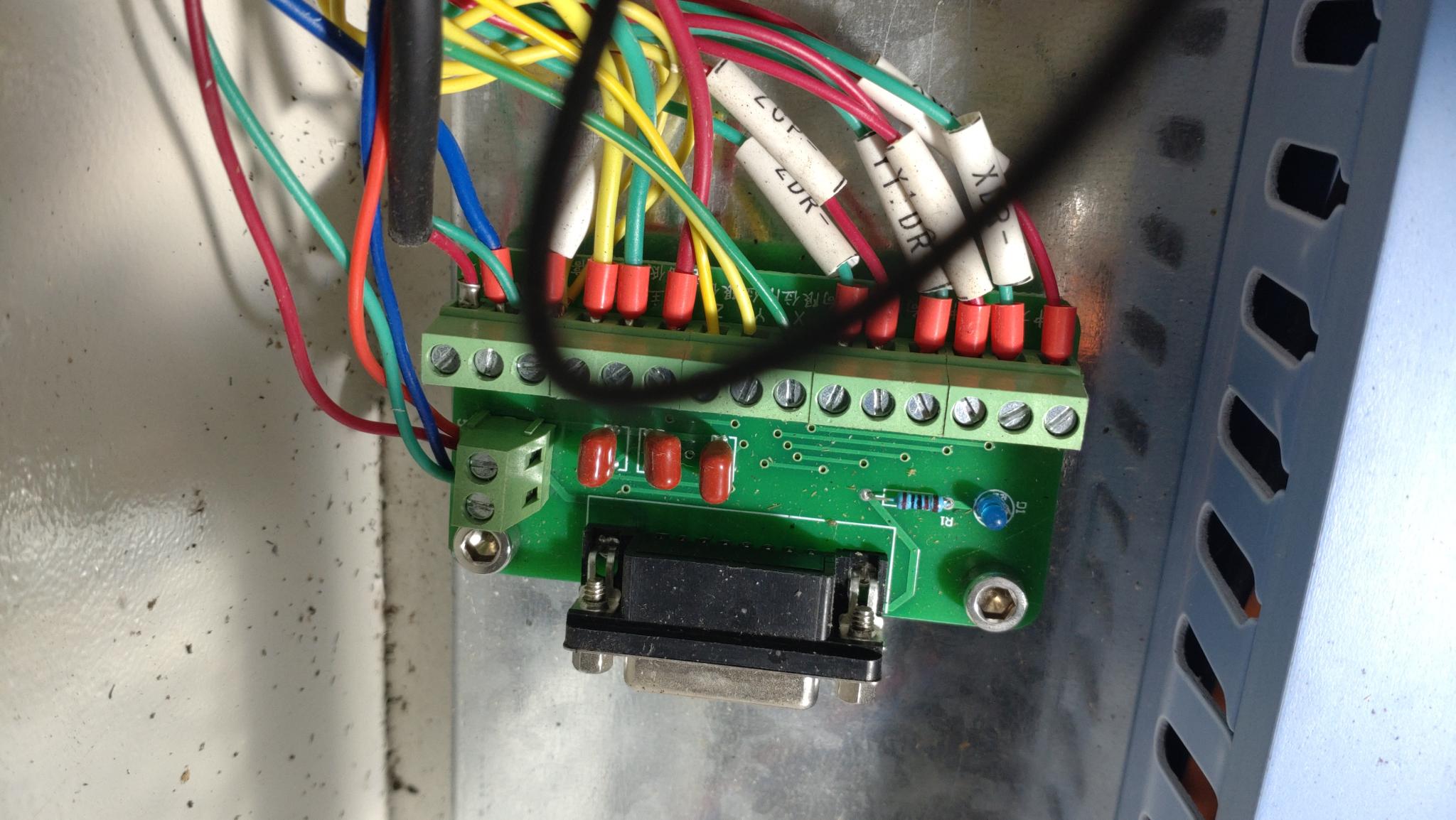 I'm going to guess that it's originally had one of the handheld/pendant self-contained controllers that's connected directly to that (very basic!) breakout board.