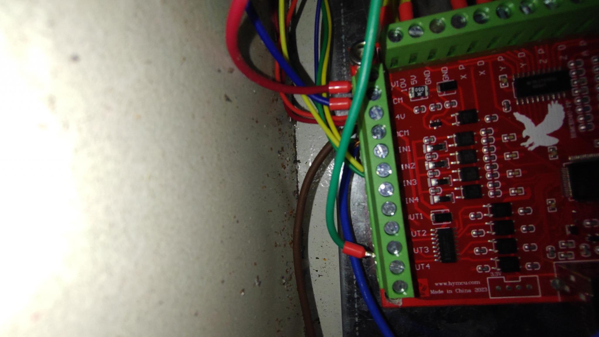 Green will be X1, which is an input, and I'd guess is used to switch the spindle on.