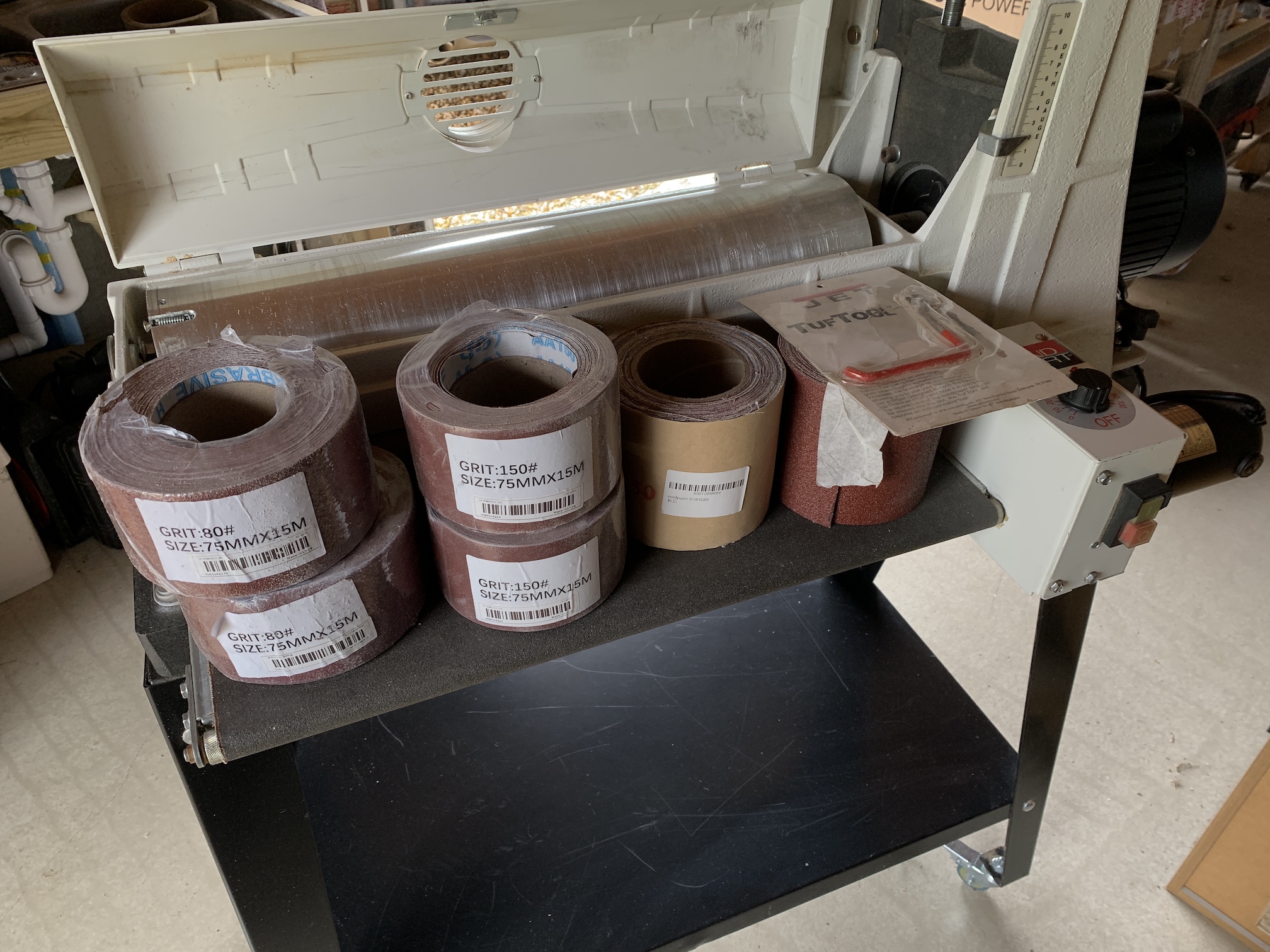 This JET 22 44 Plus Drum Sander, powered by 240 volts, is a great addition to any DIY enthusiast's workshop. It is perfect for sanding large pieces and is designed to meet the needs of professional woodworkers and DIY enthusiasts alike. The drum sander is suitable for both home and commercial use, making it a versatile tool in any workshop. With its powerful motor excellent choice for those who value precision and efficiency in their woodworking projects. I fitted wheels to the base to make it easy to move around the workshop when not in use. General wear & tear, but in great condition throughout.
