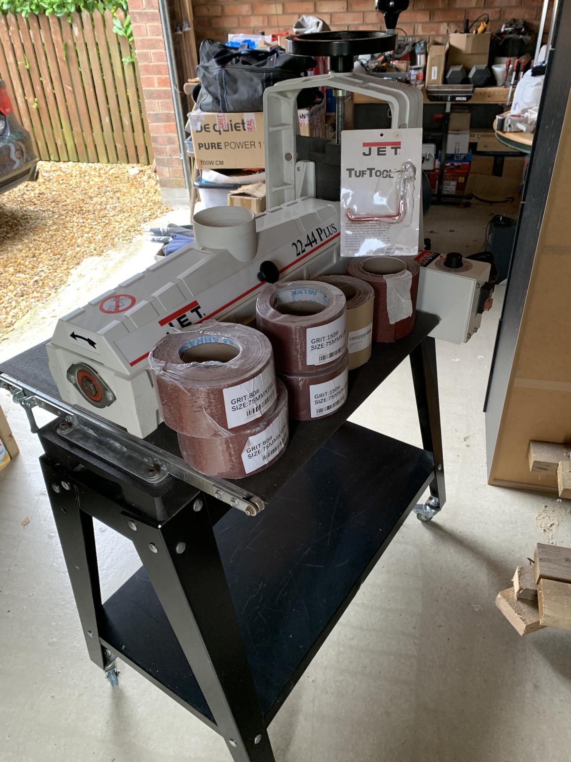 JET 22-44 Plus Drum Sander 240 Volt Axminster with Auto Feed in/Feed out Table.