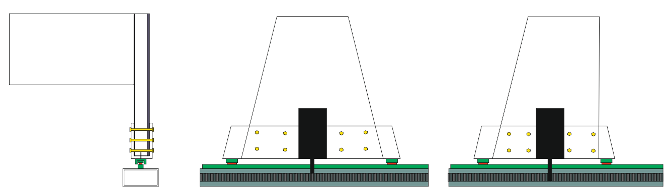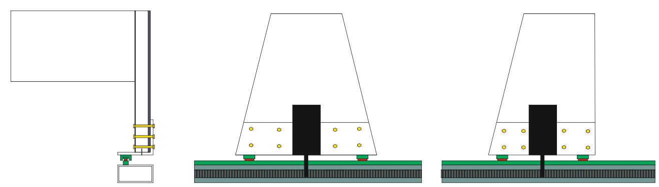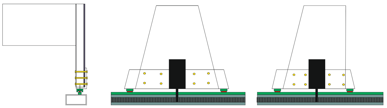 Gan 3 - The Gantry sits on sections of C Channel and then everything is through bolted on either side. These then extend out of the sides like Gan2, allowing the forces to go directly down.