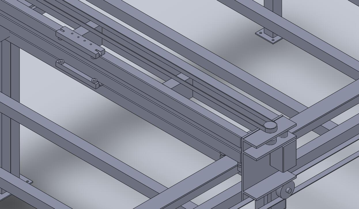 Another weak point is the belt drive shafts at each end need more support, either a central strap in the middle or the best solution is to support the free ends. it may not be to apparent but once the belts are tensioned and its in motion even the smallest flex will cause problems.