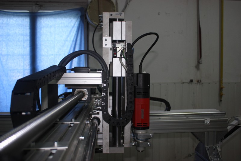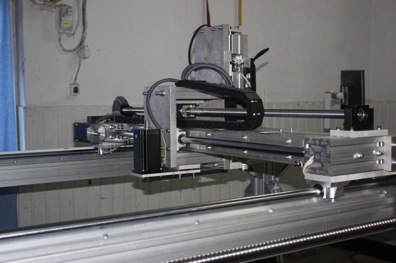 ...you might want to consider bracing the ends of the X axis profiles to each other. They are cantilevered up away from the baseframe, so might deflect a bit on the harder cuts. Just a thought - if you're happy then leave it because it might impede work access.