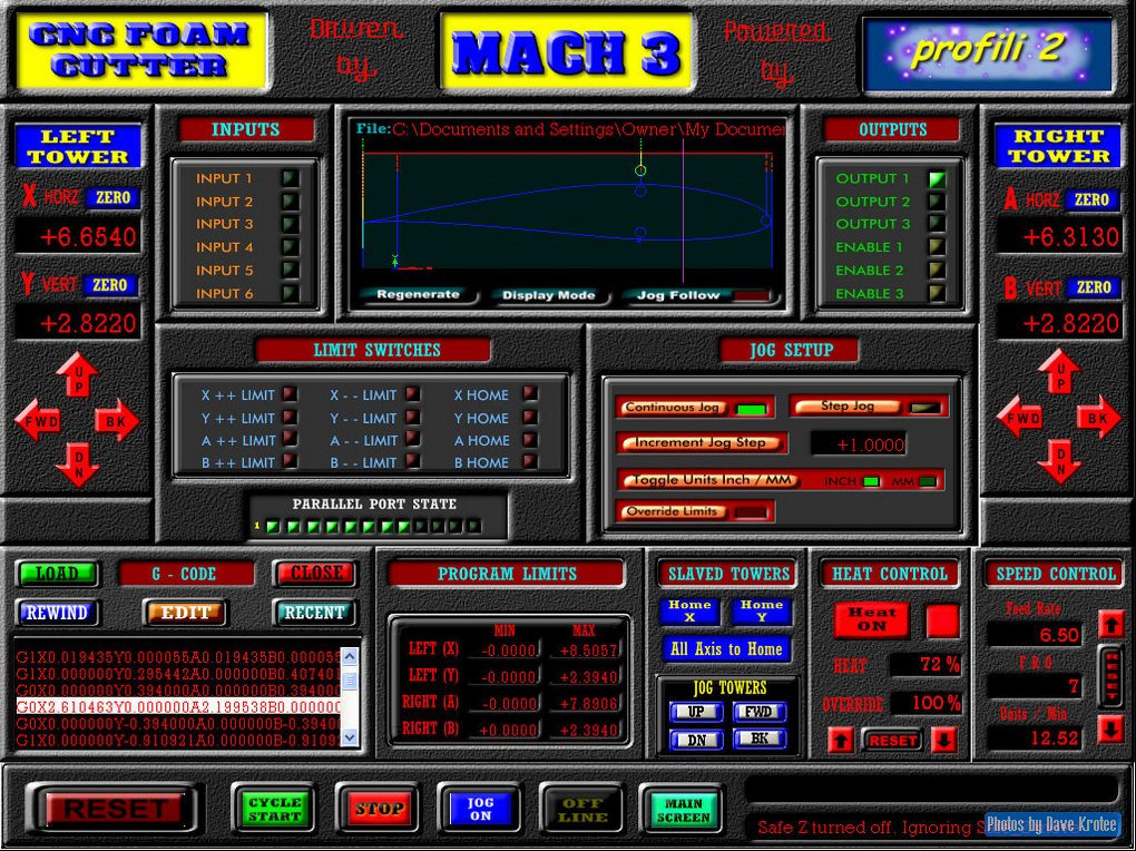 Here are a few screen shots of a screen set I designed for controlling a hot wire foam cutter.