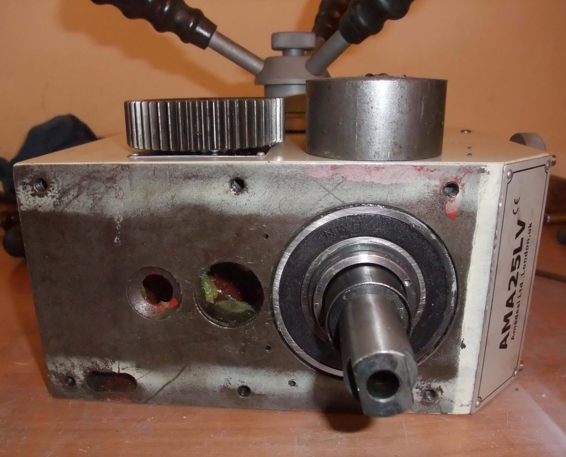 Spindle Head back on but at this pint i find out the spindle wont turn (ouch ) so strip down to find the problem i had drifted the spindle two far in and locked up the bearings so drift it out 1/32 fitted it back and all is well always make sure the bearings turn before assembling not like me im always in a hurry and this is what happens