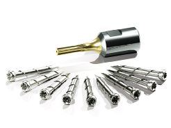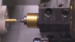 There are only two necessary components that achieve the Rotary Broaching process: 1) A Rotary Broach Tool Holder 2) Rotary Broach. The principle that makes this process work is the 1° angle of the cutting tool to the centerline of the work piece. This causes the Rotary Broach to shear into the work piece, with a chisel or scalloping effect, as the broach is fed into the part to the depth required. The Rotary Broach Tool Holder has a live spindle that holds the broaching tool, allowing the spindle to spin freely within the Tool Holder. It is then driven by contact with the rotating work piece. Our Rotary Broach Tool Holders are adjustment-free so there is minimal setup required and include such features as sealed bearings which require no routine maintenance and a pressure relief hole that allows air and fluid to freely escape.