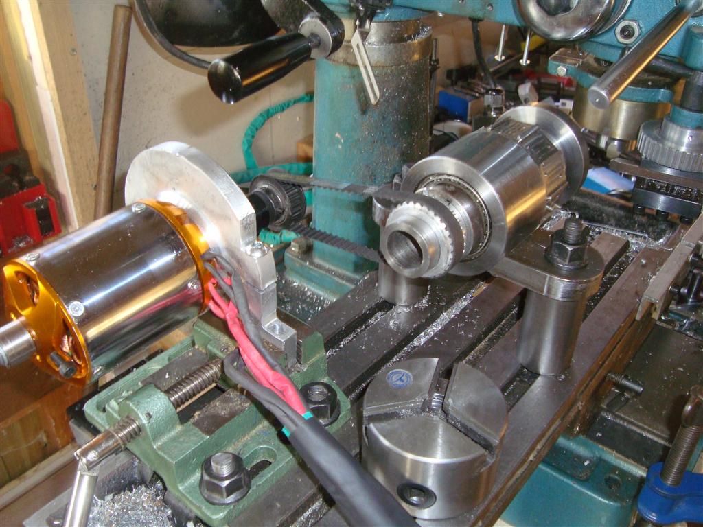 The motor, though only run on 24V from some big batteries - not the 48V that it is rated for, and geared for 2900rpm works well at the much lower rpm required to machine the face of the spindle which is 80mm diameter.