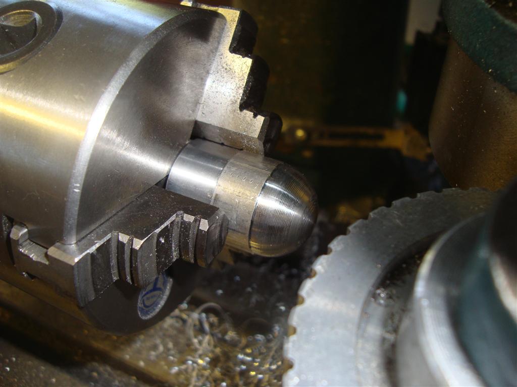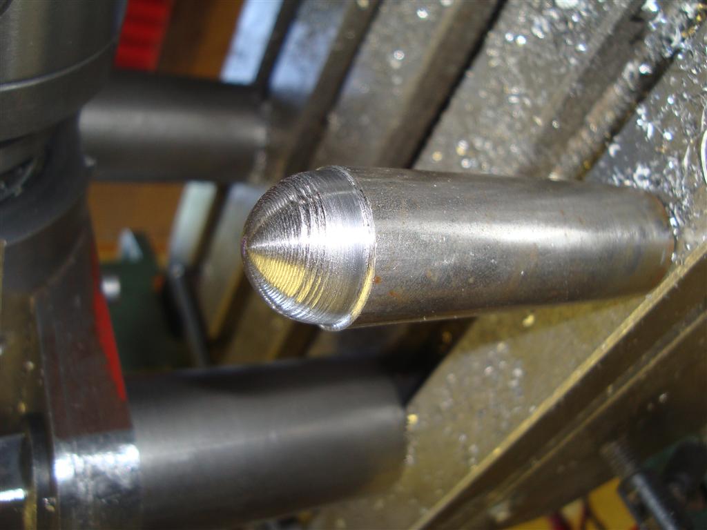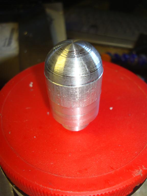 Just as a test I tried machining a 22mm diameter hemisphere onto a piece of aluminium bar, and a similar size hemisphere on to the end of a 20mm diameter mild steel bar. I will upload the videos shortly, here's some pictures of the result. Not great, but it's hardly surprising with the way the tool was mounted and the tool I used: