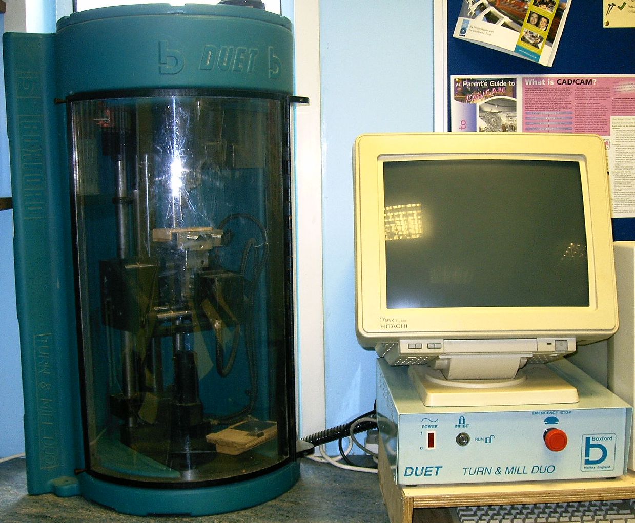 Great Torrington School, Design and Technology Department has a Boxford Duet for sale. This combined CNC Lathe and Milling Machine is versatile. It comes with original software, set of milling tools, operating manual and 4 introduction projects.