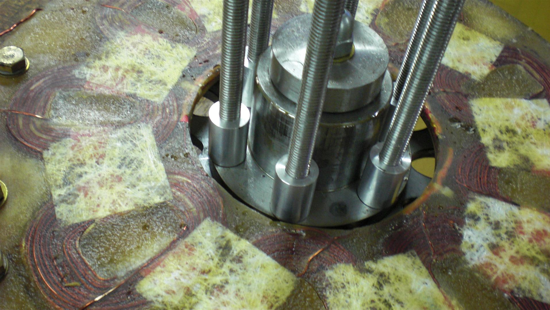 As you can see mine (along with many others) uses a hub (like a trailer wheel hub, except I made one to fit better) and tapered roller bearings. That means the rotor is mounted on six M12 rods which is plenty strong enough.