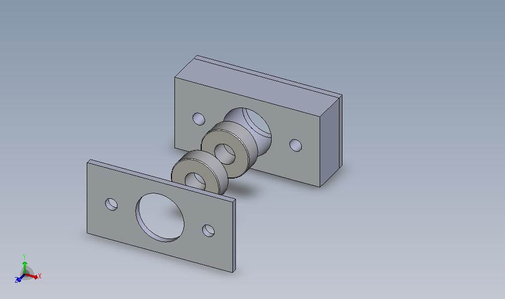Edited to add: and again with the fast reply! The single hole on one side was the original design idea, just like the other blocks I'd seen. The reason for trying to a different approach was because I thought they were using standard radial bearing in the block and thrust bearings on either side, and using the angular bearings would benefit from a different approach. Clearly not!