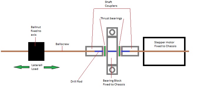 ...this would appear to be the cheapest way to avoid the latteral load from the axis being transmitted into the Motor bearing. the fact that the drawing above does not show a ballscrew is a little missleading