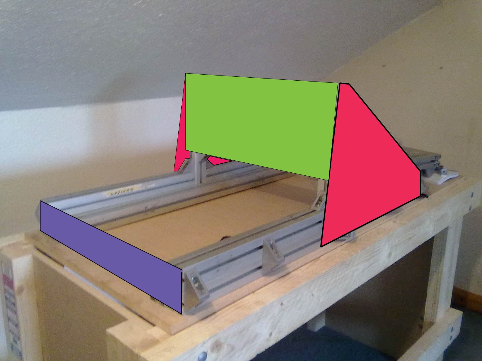 The pieces of alu that run along the inside of the "wall" are for a mounting location for the rails, though I'm still considering how to do this effectively.