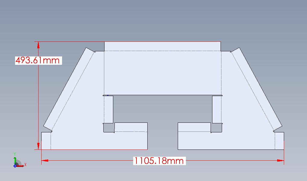 Someone came up with the rather interesting idea of replacing the side plates and front gantry plates originally planned with a single piece folded around the frame. The idea is that it would form a more rigid structure and could also work with thinner plate - the suggestion was to use 3mm, presumably to assist in forming cleaner sharper bends? If memory serves, this would be similar in concept to a monocoque design as the walls provide structural strength? Let's see how that would look (but with 5mm because I forgot to change the numbers)...