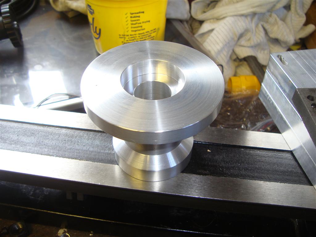 Next I turned some 3.5" aluminium bar to accommodate a two ballnuts, one in each end: