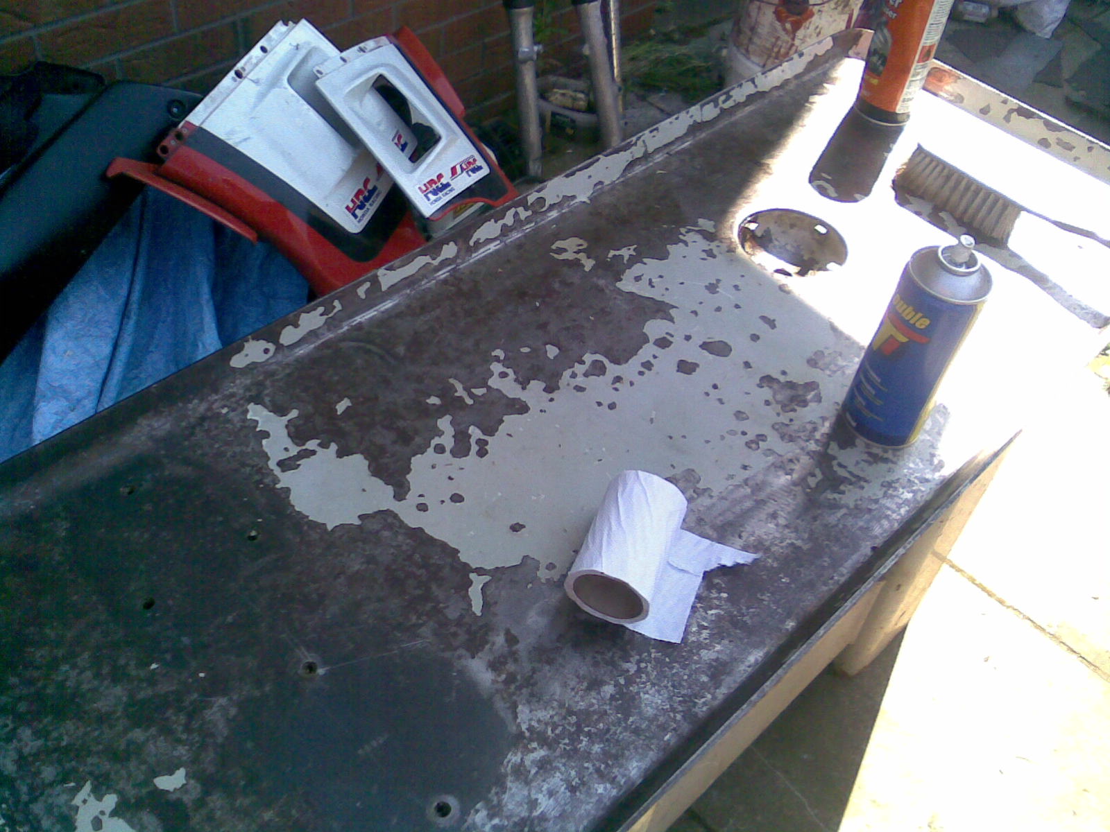 1) rather than using an expensive degreasing product i use lovely cheap & cheerful red diesel (ive also used kerosene but i find diesel is easier to clean up).