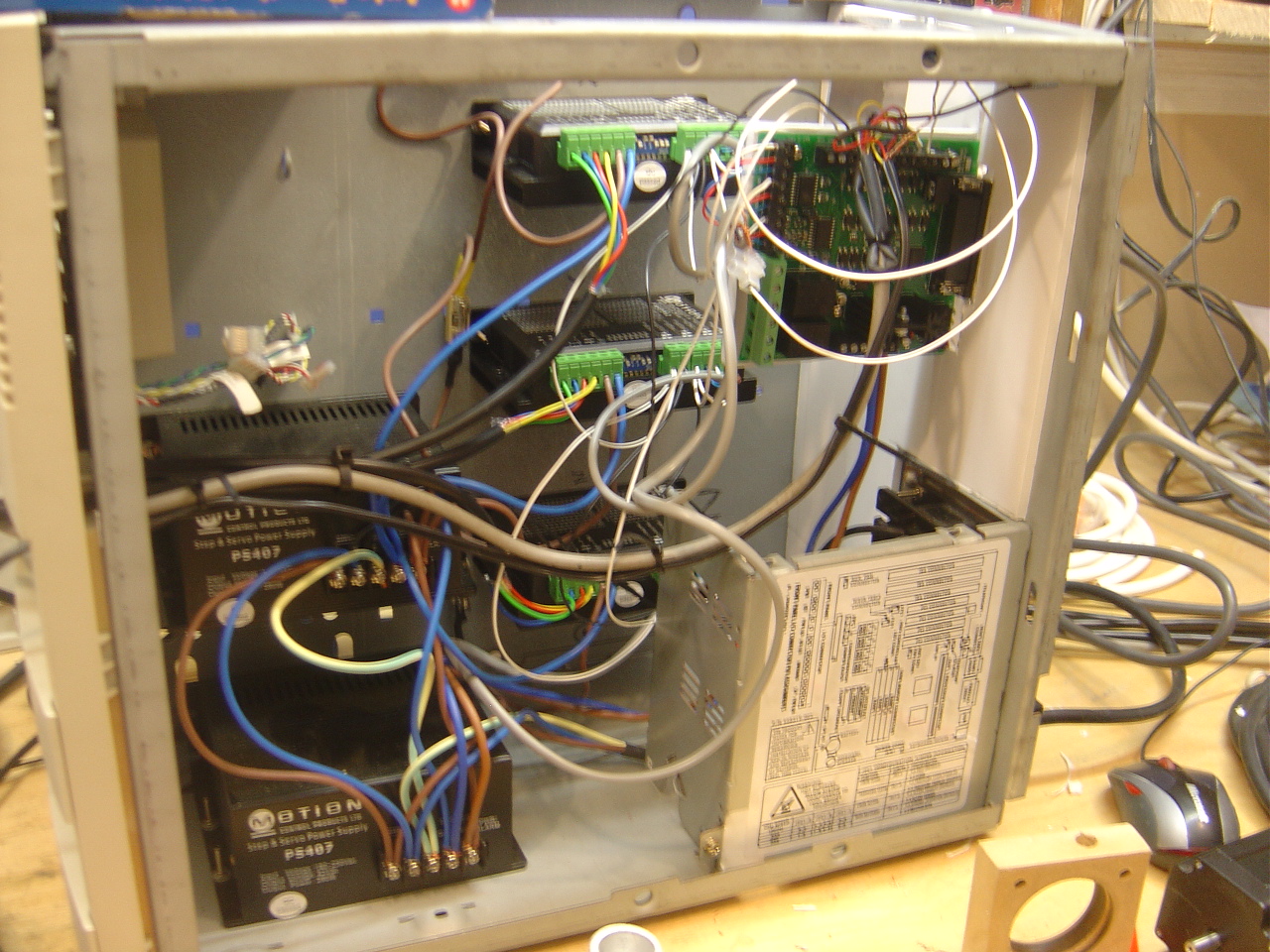 Hi and thanks for stepping in and trying to give some guidance. My drivers are Motion Control MSD542, they are fed by 2 power supplys. I am using the enable signal from the breakout board. This is what I get at present, using Mach3 and when all limit swicthes are reset, as these all work fine, I then get green lights on the driver. If I run code I get relay operation at the breakout board, so I know I have communication from Mach 3 to the breakout board. I have tried many combinations of dill switch on the drivers. I beleive the motors lock, but need to check this ?. I think I have measured voltage at the motors of 44v, but I will recheck. Have attached a few photos to show setup. Any further things to check would be a great help. I seem to be missing the pulse signal or not reading the pulse signal, but I believe I can't see this without an Oscilloscope, as I am pretty sure I have the power supply/driver/motor wiring correct as I have checked it several times. Dave