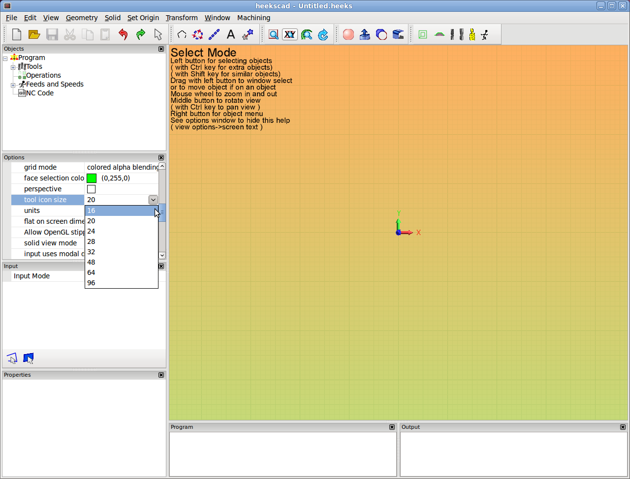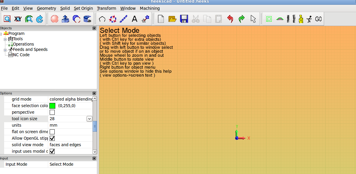 # Let's start our newly installed heekscad / heekscnc: