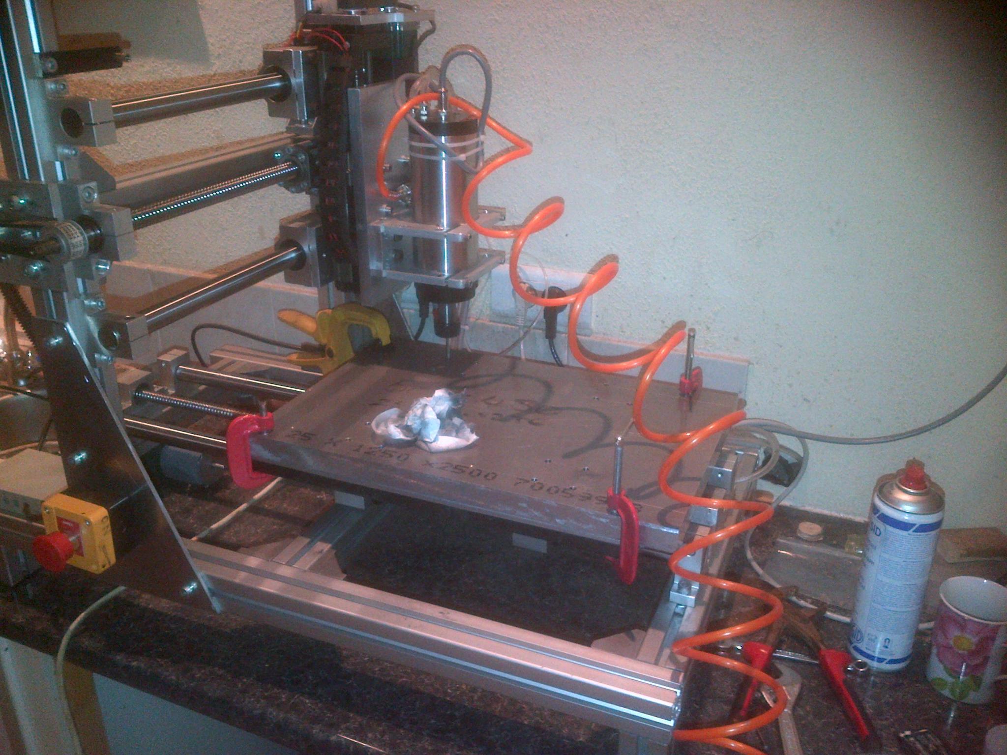 Firstly, The router....I tried polystyrene, wood, and Aluminium....The Aluminium was difficult to get any good results with so I ordered a Chinese 2.2kw water cooled spindle and controller. Then I had to get a Z plate made to hold it and had to buy a spindle holder from US ebay. The Chinese holder was rubbish from ebay.
