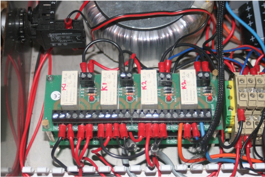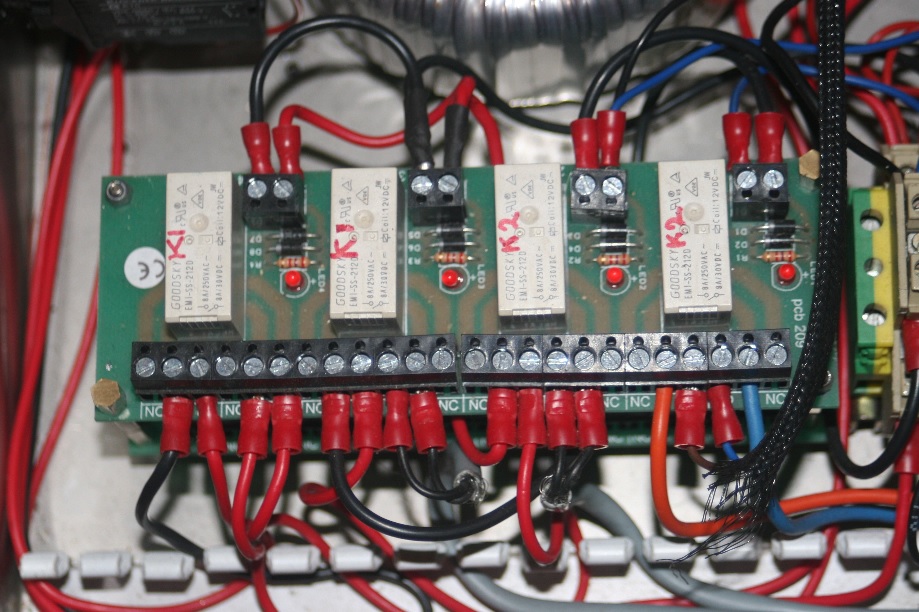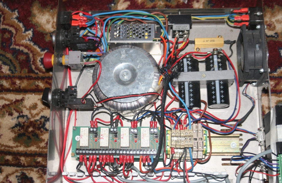 The boards are marked, Relay 1 to relay 4 it's my understanding they are there for the limit / home switches. The LED at position 3 comes on when I turn on the rotation switch on the front of the controller. The other 3 LEDS light up when i press the green push button on the front panel. The E stop turns the all out.
