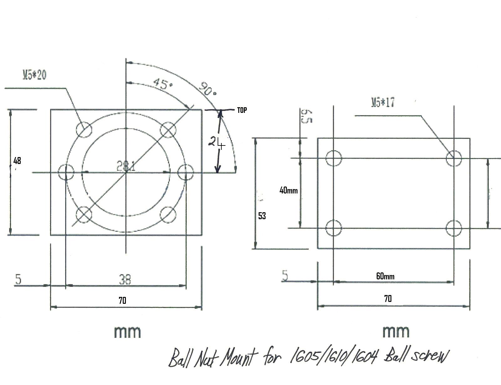 I am having my Ballnut housing custom made to the correct hight from the ballscrew center to the top of the ballnut housing. So I need to be sure that wherever I buy the ballnut, they are all the same dimentions between each mounting hole. This is my ballnut housing plan below.