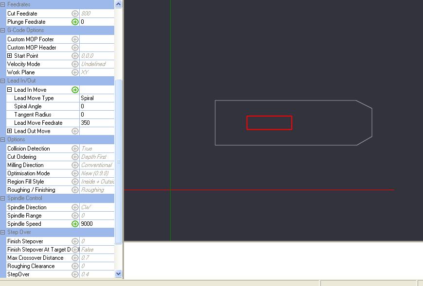 I went back to cambam and checked. My feedrate is there 800. Spiral down feedrate 350. I set the plunge rate to 0 as I don't want plunge as I am using Aluminium.