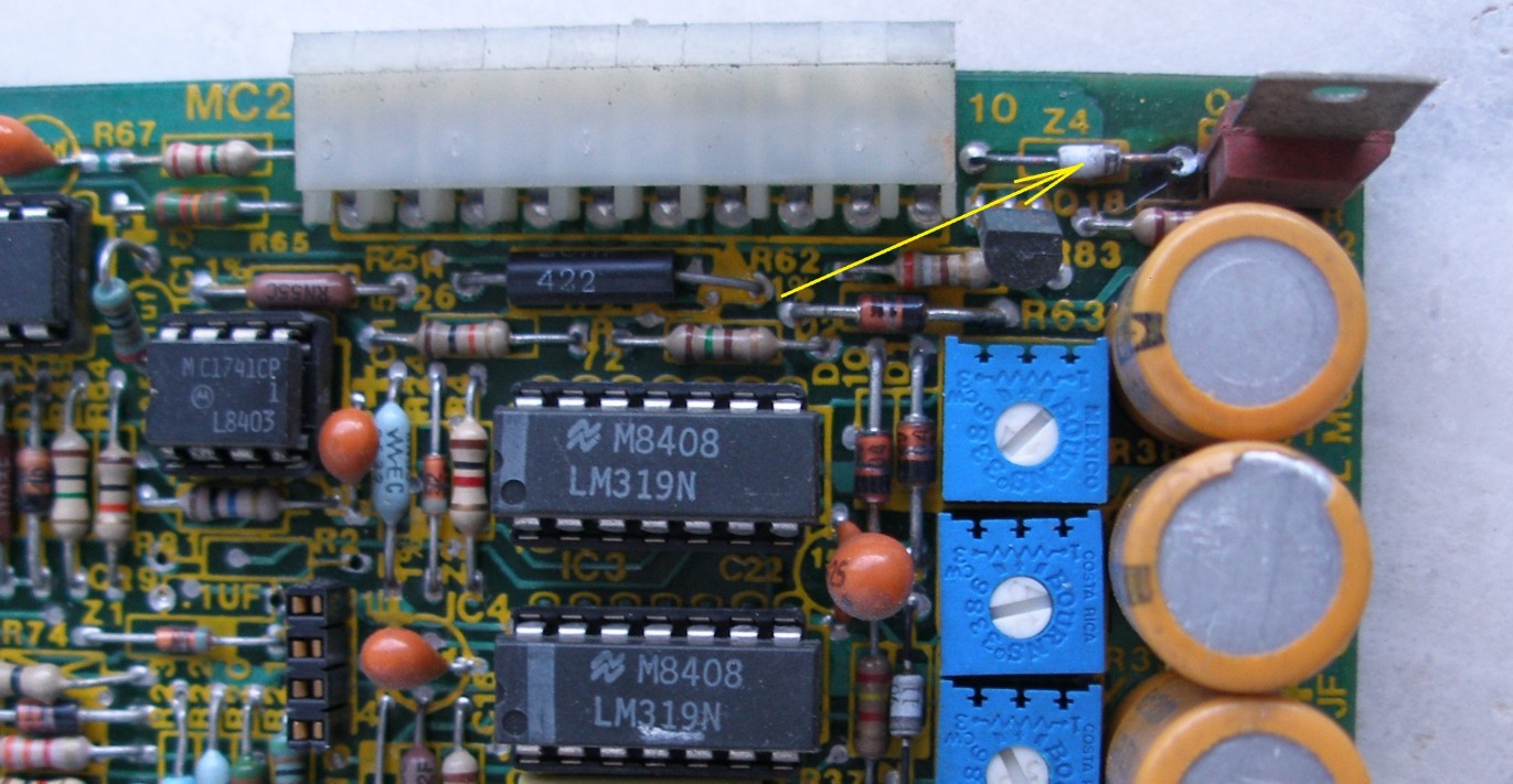 Does anyone pls know the value of the Zener pointed by the arrow. It controls a 3 Amps 40 volts NPN transistor. The General Electric<D42C3>