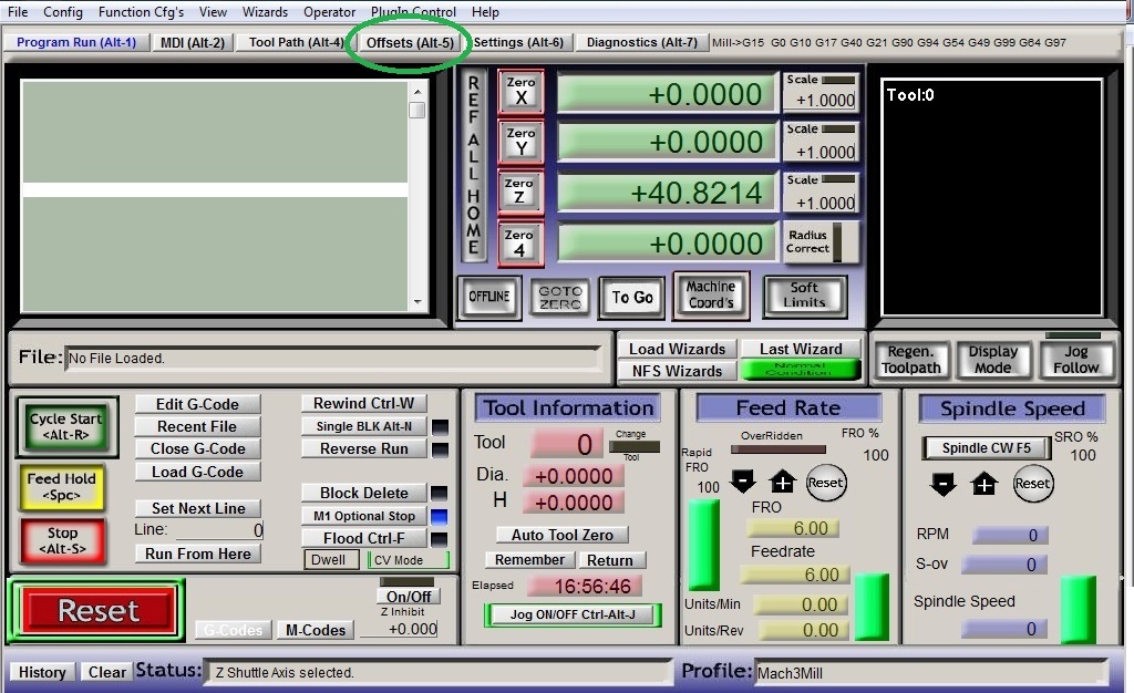 This tutorial assumes you have fitted a probe on your system, and assigned it to an input, and that the large digitise led on the diagnostics tab in Mach3 lights when you activate it.