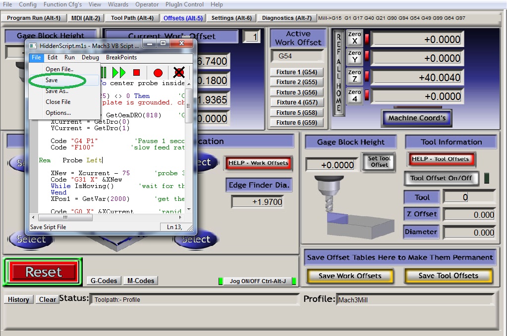 A tutorial to show the configuration of Mach3 (with standard screens) to find the center of a hole or pipe.