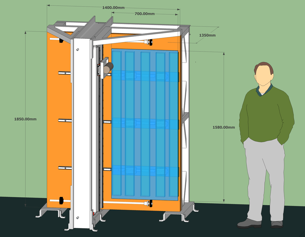 Overall machine size is 1500 wide, 2000 tall & 1350 deep. (I missed most of that off the Dims. Doh!)