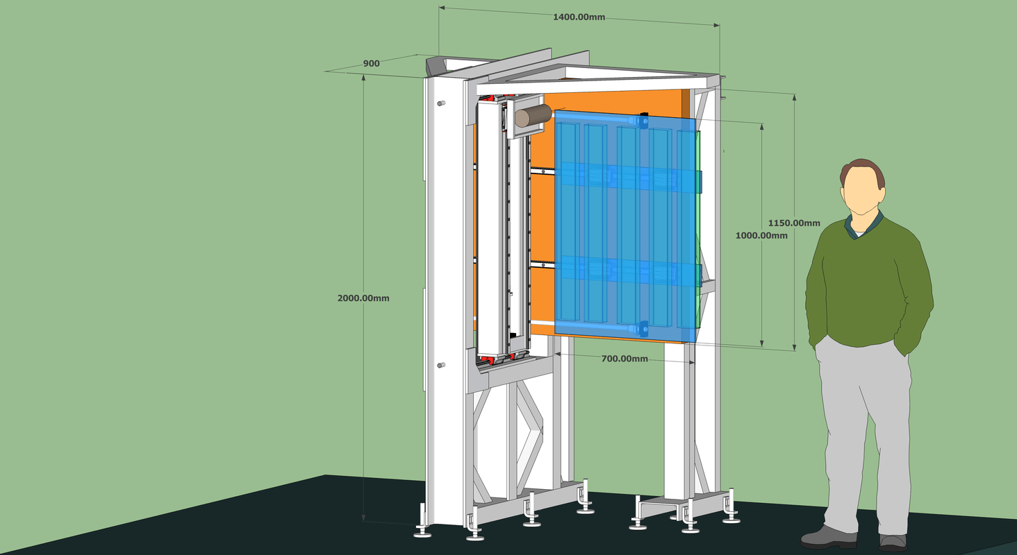 Here is a new draft, with quite a smaller footprint, that is simpler, and should be a lot easier to build. As well as cheaper for Rails/Screws etc. which i still have to buy.