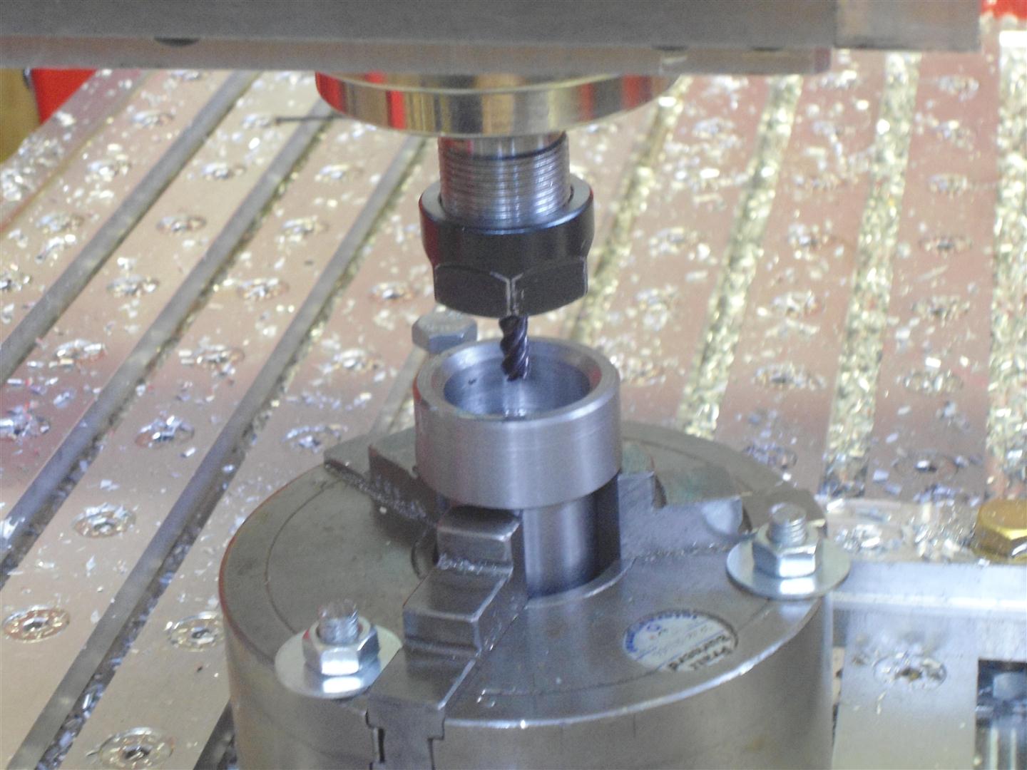 Unfortunately, the rails intended for Z were slightly shorter than anticipated, and as a result, only part of the Z axis travel is available until they are replaced. However with over 100mm of travel this currently doesn't pose a problem. Some of the holes in the Z-axis plates had to be positioned on the end, which meant the only way I could think of to drill them accurately was by putting the plate in the lathe and using the lathe to drill them: