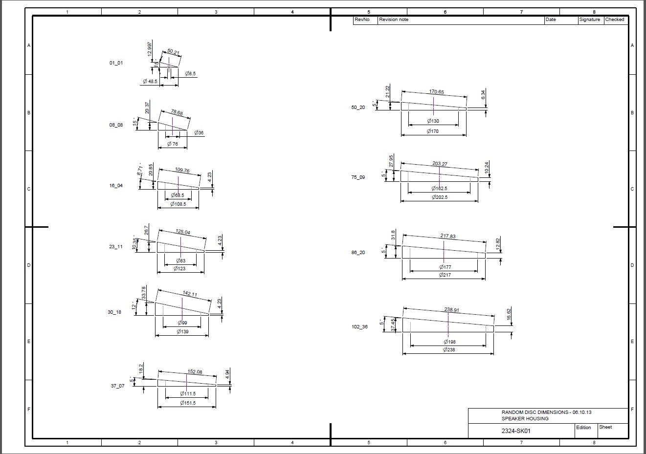 I want to make a logarithmic spiral, (like a snail), from Boltic Birch Plywood - 40mm thickness. I have worked out and completed the design. It consists of 102 sections which are hollow cylinders with an angled top. Each section has a different diameter ranging from 48.5mm to 238mm. The heights range from 13mm to 38mm and the angles ranging from 5 degrees to 15 degrees.