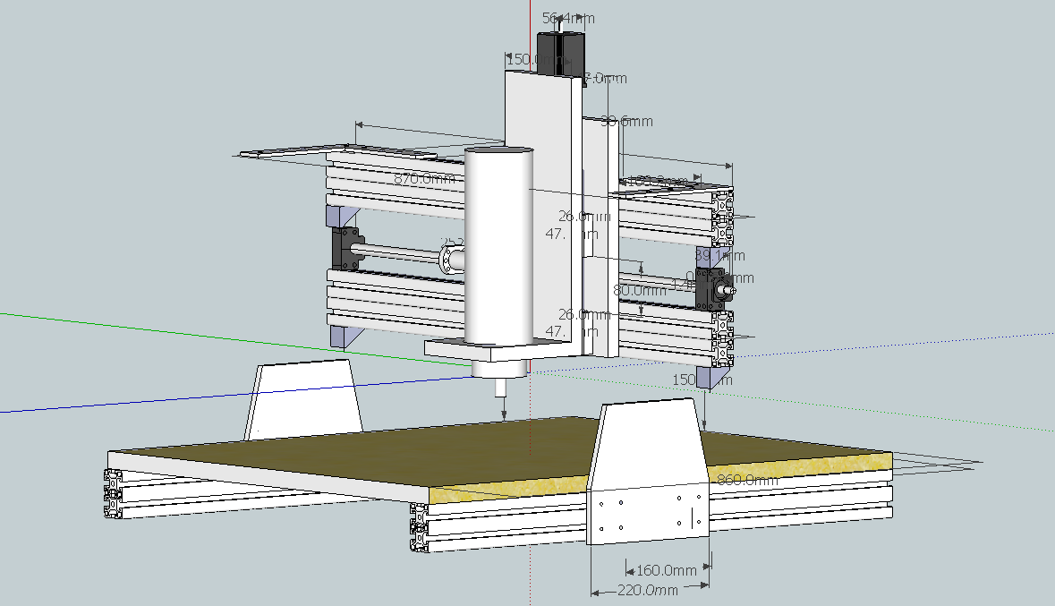 The gantry sides will be 40x160 aluminium profile similar to Shinobiwans, bolted to 20 mm thk profile bearing blocks.