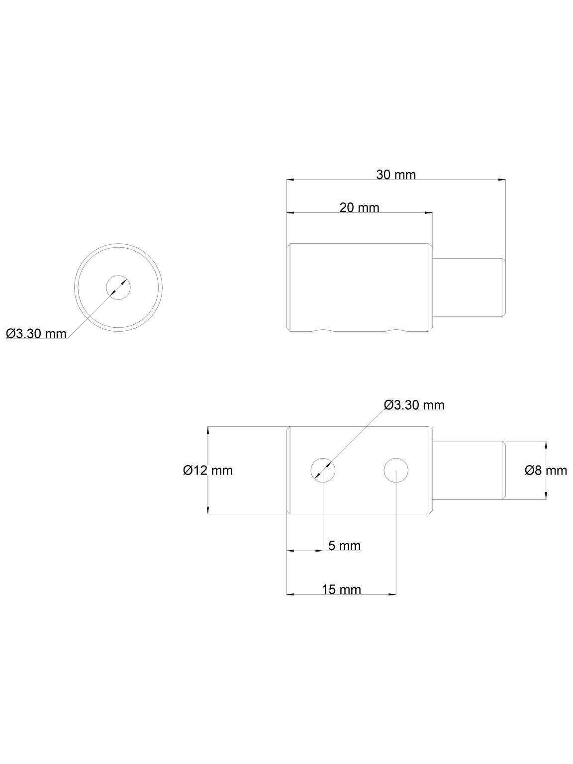 The two 3.3mm holes are for M4 grub screws and only go to the centre.