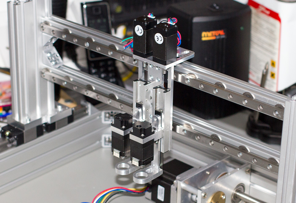 The pnp machine has two picker heads driven by NEMA 8 motors.